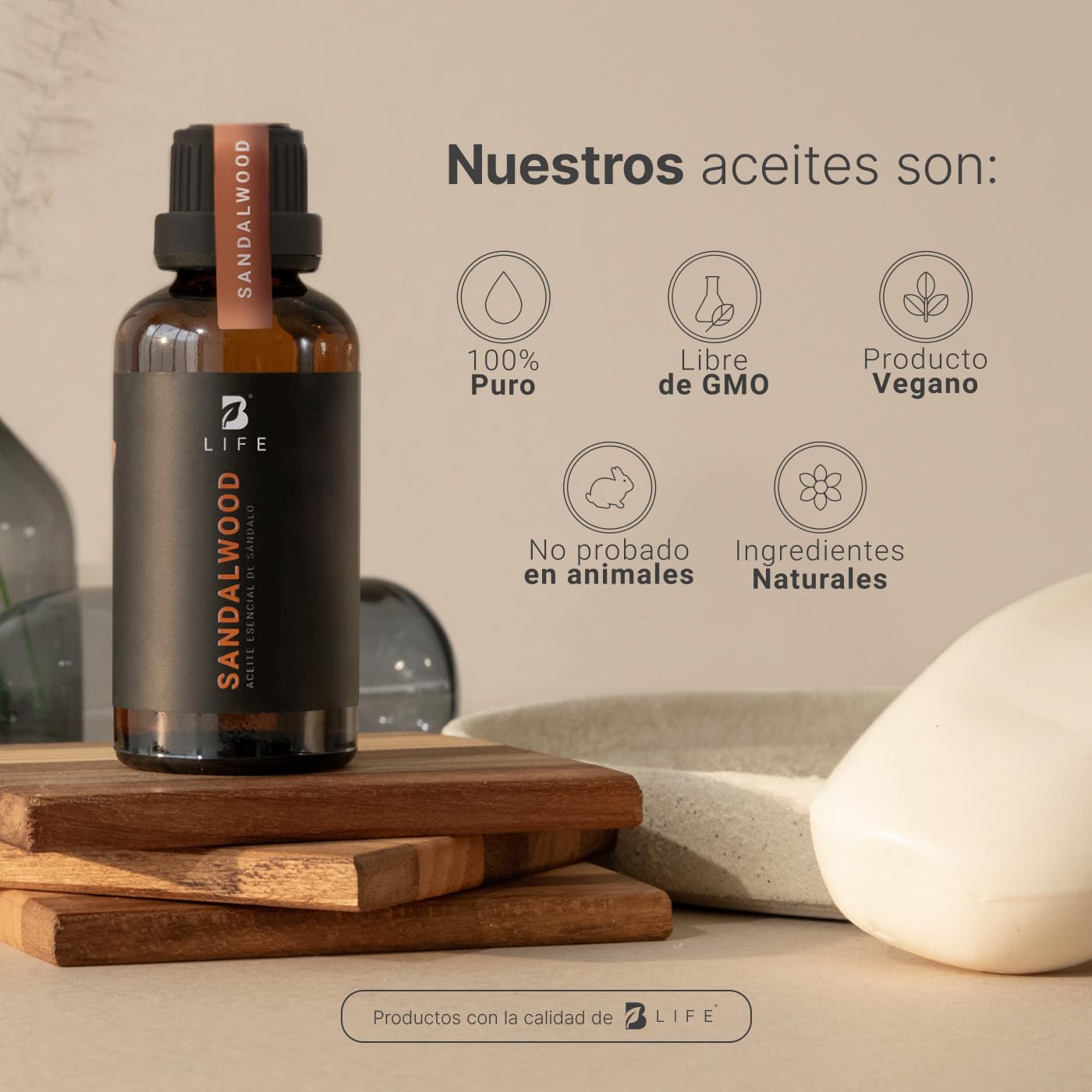 - ¡Eleva tus sentidos con Sandalwood Essential Oil B Life! Descubre la maravilla de nuestro aceite esencial de sándalo, 100% natural y lleno de beneficios derivados de esta esencia pura. Su exquisito aroma no solo armoniza tu espacio, sino que también te sumerge en un ambiente relajado y acogedor.
