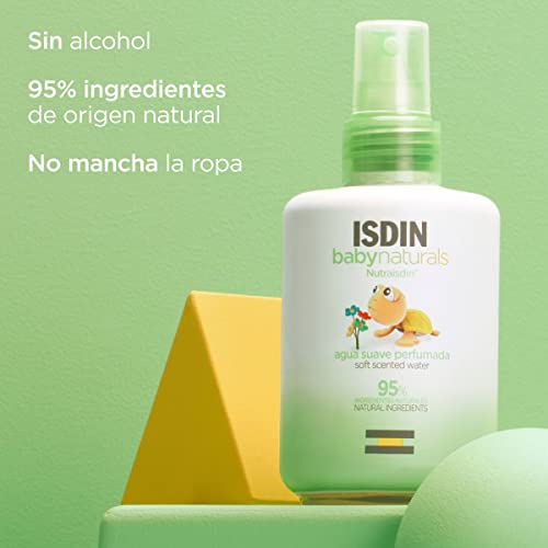 - Isdin BabyNaturals Mist. Agua suave perfumada 200 ml para el bebé sin alcohol, con un 95% de ingredientes de origen natural, que hidrata y protege la delicada piel del bebé.