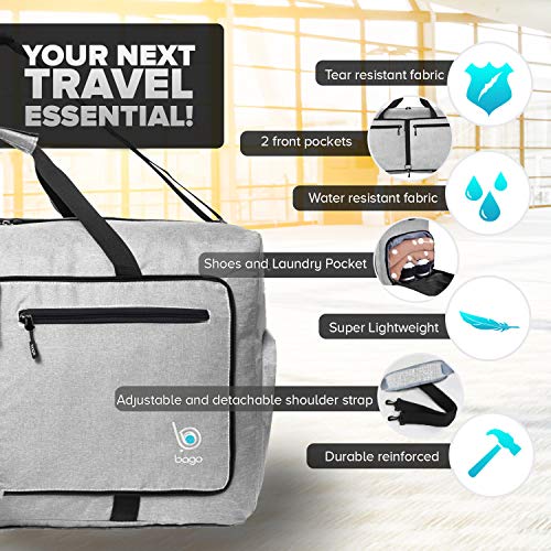 - BÁSICO MULTIUSOS DE VIAJE – Úsala como bolsa de equipaje principal, bolsa de compras o maleta de fin de semana. ¡Nuestra bolsa de viaje plegable pesa un 75 % menos que la mayoría de maletas! Cuando estés en el aeropuerto, simplemente ábrela para llevar regalos, ropa sucia o para pasar artículos de una maleta dañada a otra y evitar cargos por exceso de equipaje. ¡Viaja sin estrés!