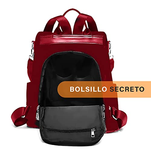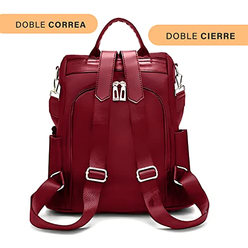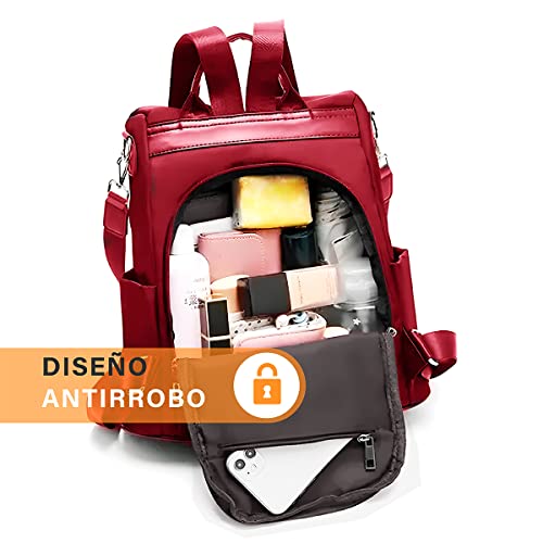 ▶ Bolso Mochila Para Mujer Moderna, Bolsa Casual Impermeable, Backpack Antirrobo, Para Hombro y Espalda, Medidas: 31 X 14 X 31cm (Color Rojo)