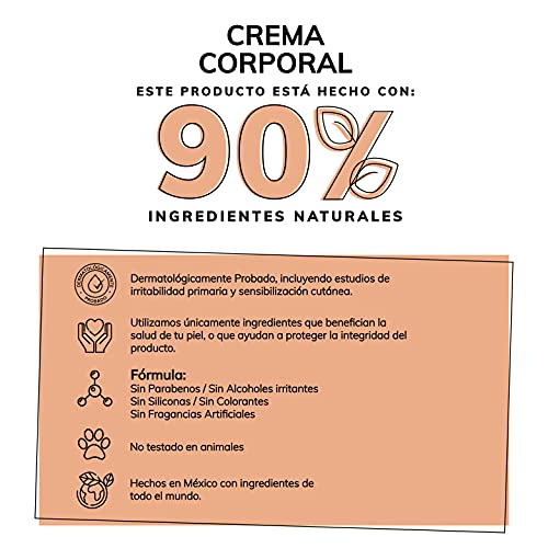 - 90 % INGREDIENTES NATURALES: Esta crema corporal hidratante ofrece todos los beneficios que la piel de tu cuerpo necesita. No contiene petrolatum ni derivados del petróleo.No contiene fragancias artificiales, colorantes ni parabenos. Renueva los niveles de humedad con Vitamina E+Vitamina B5 + Manteca de Karite. La piel de tu cuerpo se verá suave y brillante, y estará lista para comenzar o terminar el día. Producto libre de crueldad animal.