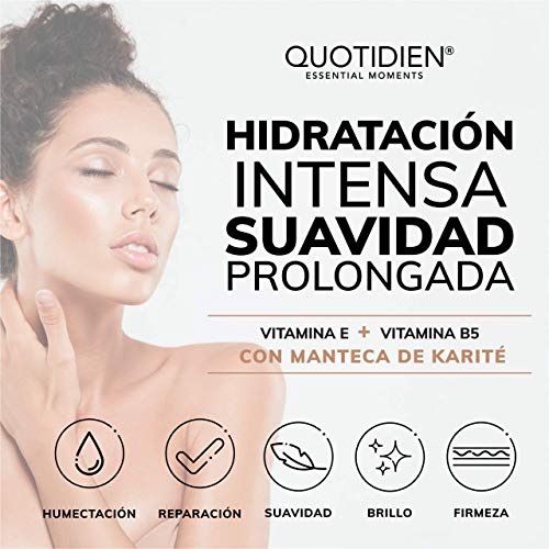 - HUMECTACIÓN EXTREMA de ALTA CALIDAD: La Crema Corporal Quotidien fue diseñada para hidratar, dar suavidad y brillo a la piel de tu cuerpo. Ayudará a disminuir la irritación y resequedad, ayudando a tu piel a recuperar la humedad que necesita. Esta combinación de ingredientes naturales harán que tu piel mantenga una hidratación prolongada y le dará un toque aterciopelado único.