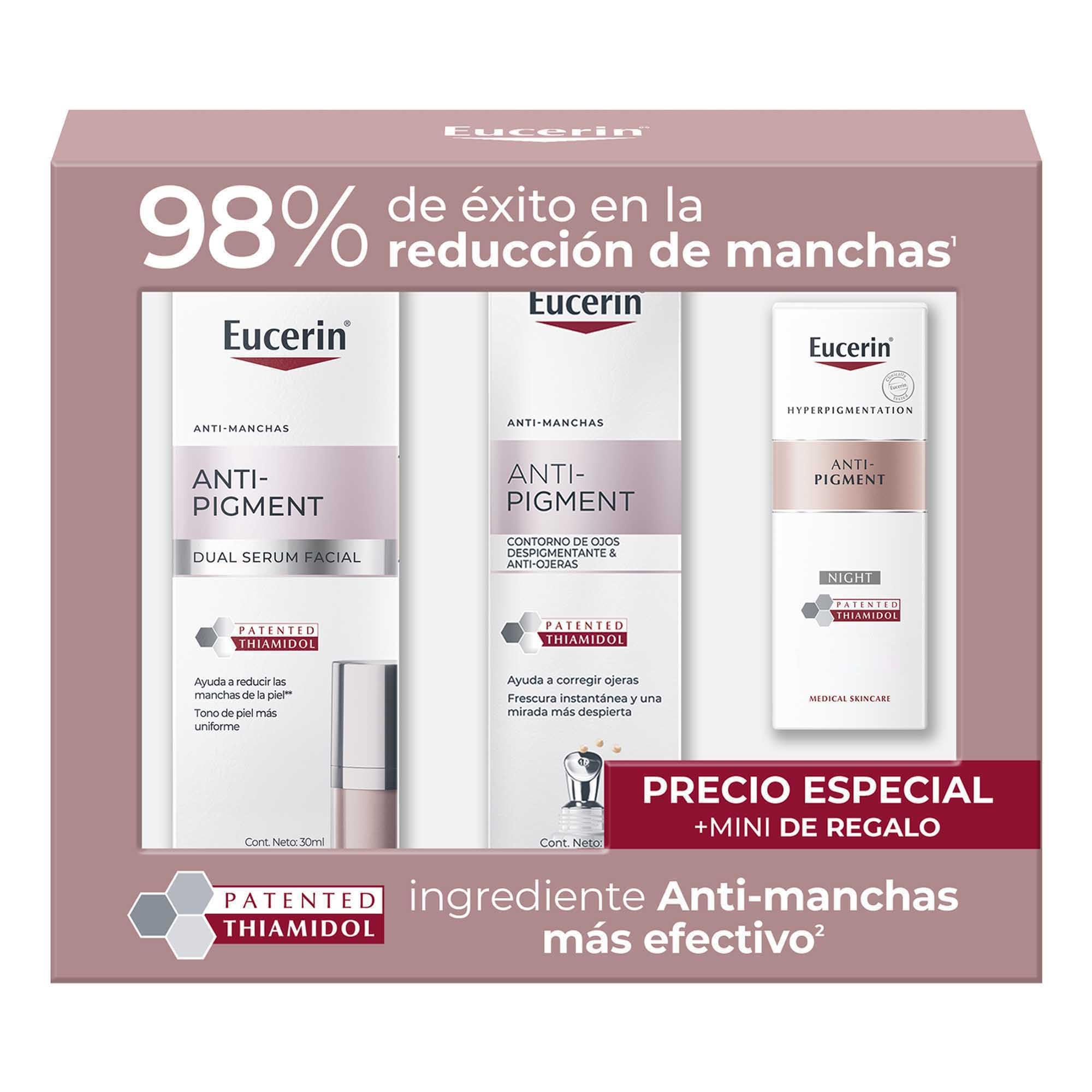 ▶ Eucerin ANTI-PIGMENT DUAL SERUM FACIAL 30ML + ANTI-PIGMENT CREMA ANTI-OJERAS 15ML+ ANTI-PIGMENT CREMA FACIAL DE NOCHE 20 ML