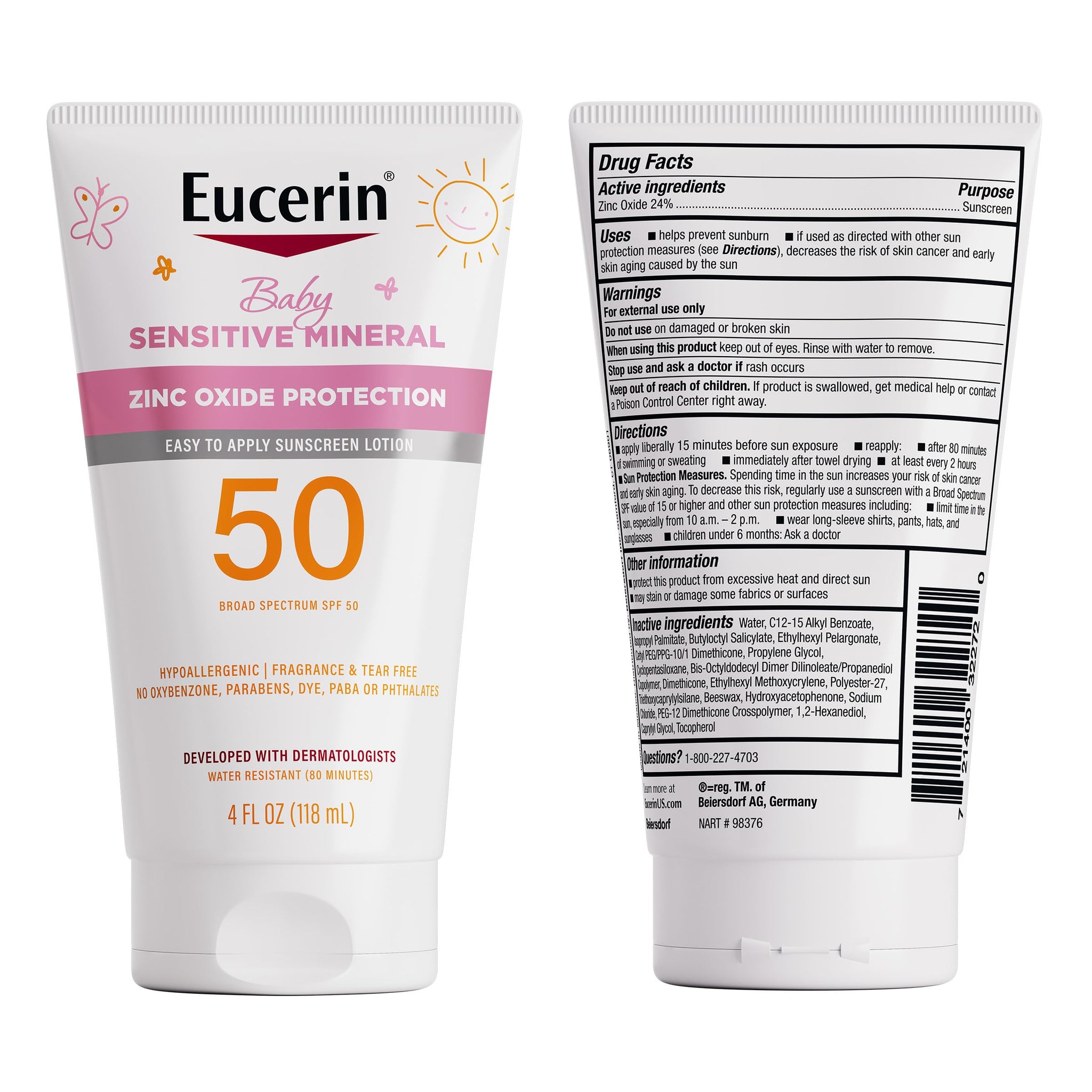 ▶ Eucerin Sun Sensitive Mineral Baby Sunscreen SPF 50, Sunscreen Lotion With Zinc Oxide Protection, 4 Fl Oz Tube