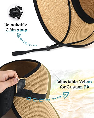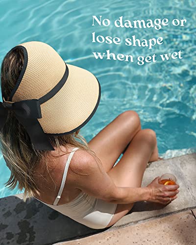 - Diseño ajustable: este sombrero de ala ancha con un lazo hace que el sombrero sea más elegante. El sombrero de visera solar viene con cierre de velcro ajustable en la parte posterior y ajustable para cabezas de 21.6 a 23.6 pulgadas