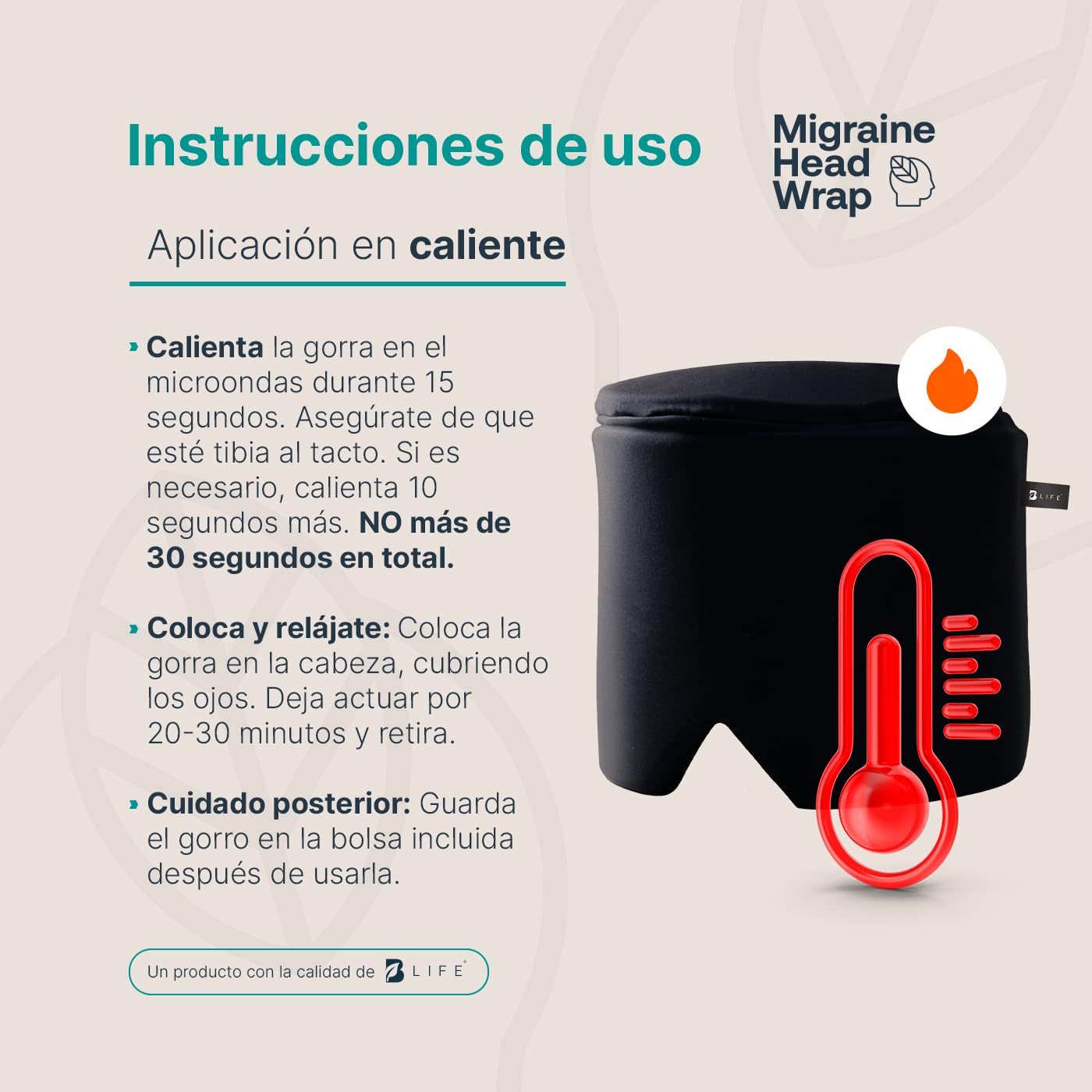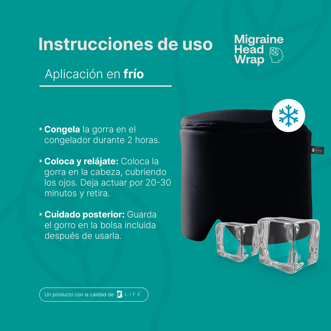 - ¡Gorra de gel refrescante B Life, tu aliada contra molestias en la cabeza! Esta increíble gorra de gel maleable es una herramienta versátil y efectiva para auxiliar en las molestias asociadas con la cabeza, ofreciendo enfriamiento o calor. Gracias a su elaboración con una tela exquisita de alta calidad y su innovador gel, proporciona una excepcional sensación de suavidad. Talla M: 15.5 cm de diámetro, 13 cm de alto y 23.5 cm de ancho.