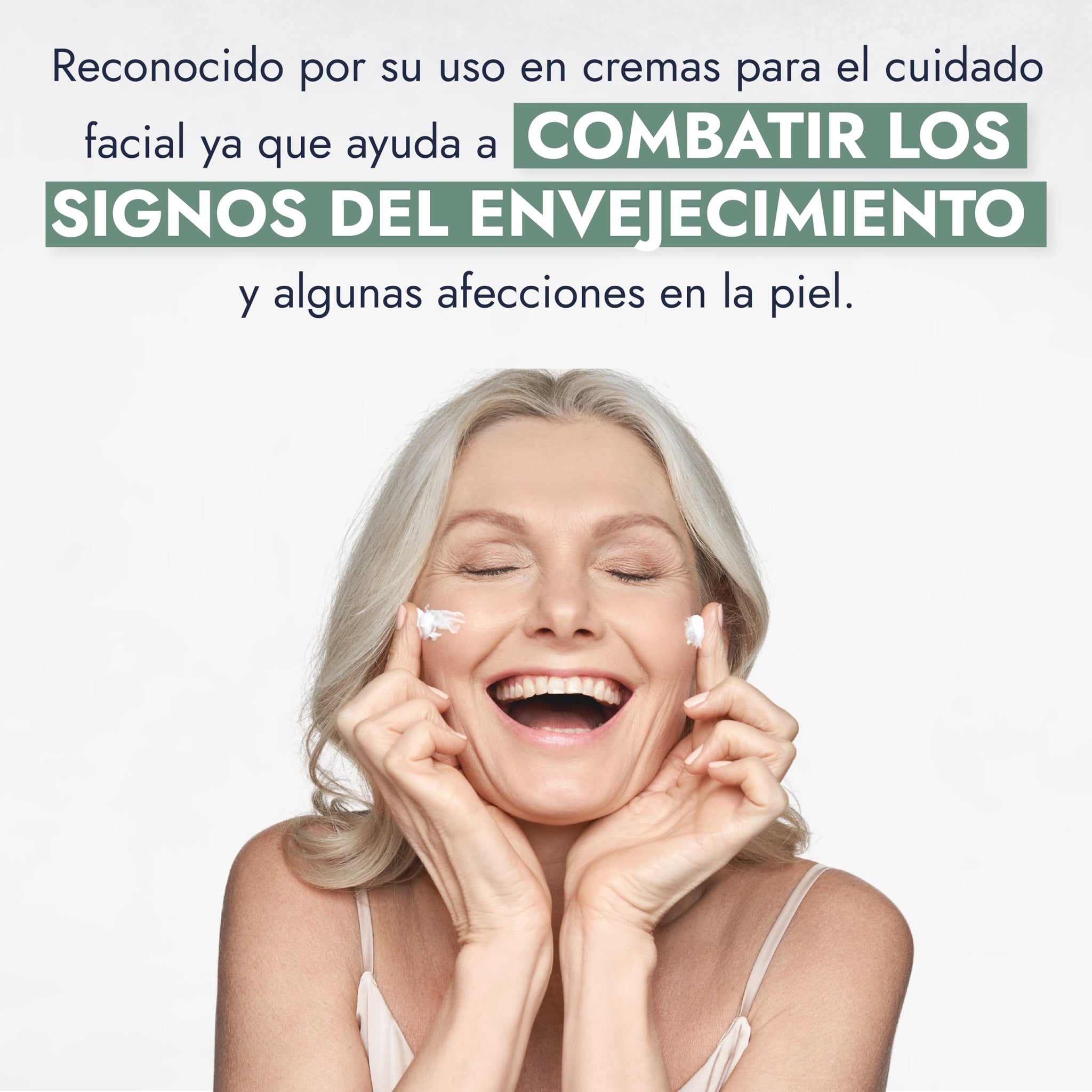 - PUEDE COMBINARSE: Con cremas para combatir los signos del envejecimiento y la caída de cabello. En cremas como desmaquillante.