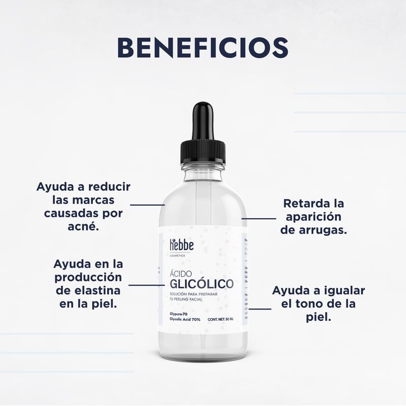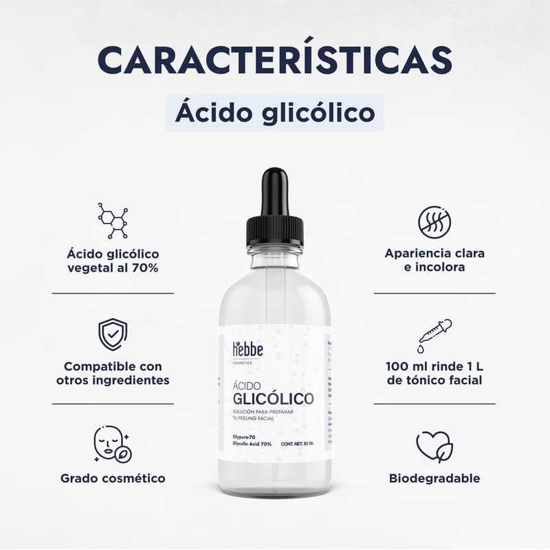 ▶ HEBBE - Ácido Glicólico, Exfoliante y Renovador para Piel, 50 ml