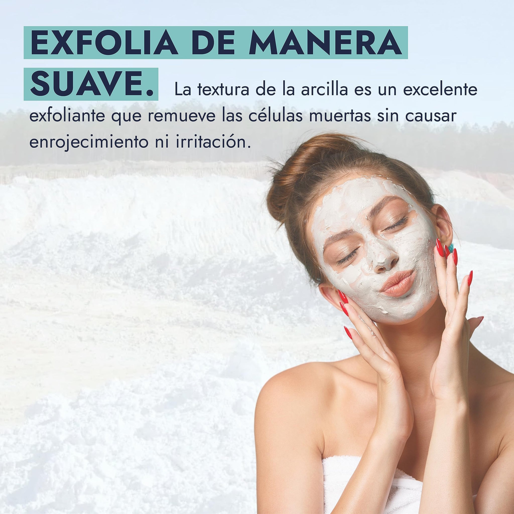 - FÓRMULA: 100% Caolín, Arcilla Blanca grado USP cosmético. No tóxico. Exclusivo de uso cosmético por lo que no se recomienda ingerir.