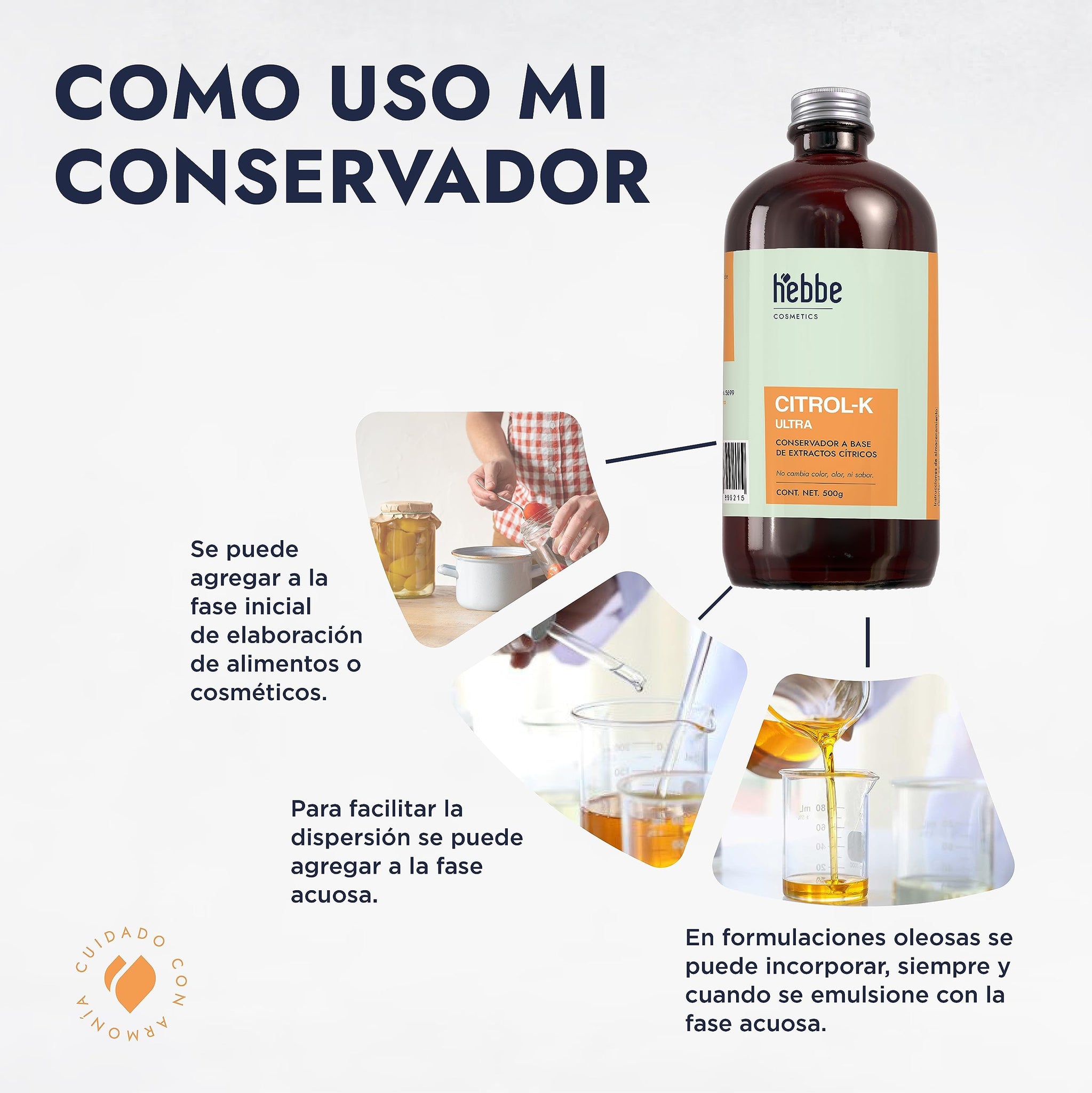 ▶ HEBBE - Citrol K 500g | Potenciador de Aroma | Conservante Natural | Potencia Propiedades Cosméticas | Ideal para Cremas y Lociones | Pureza Garantizada.