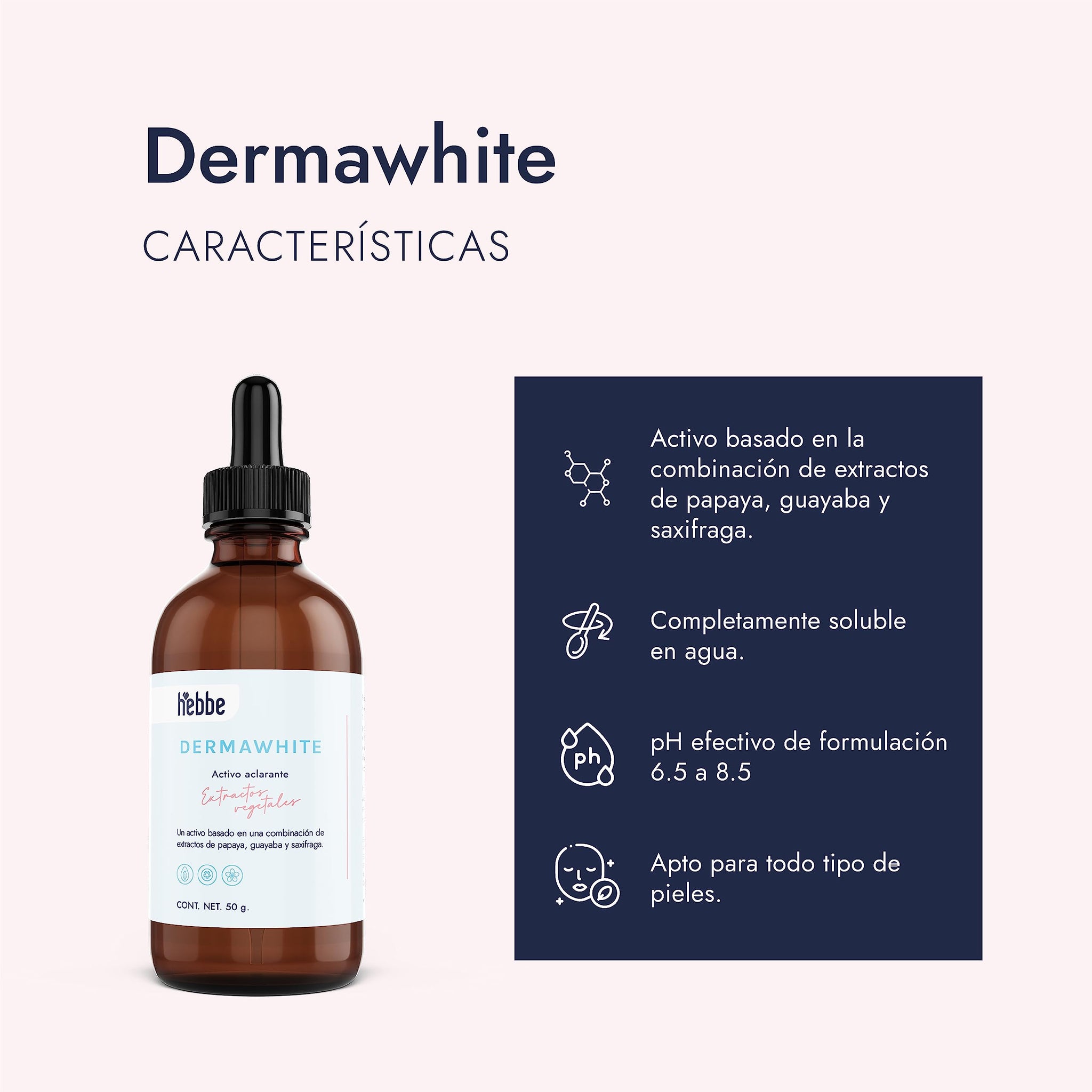 ▶ HEBBE - Dermawhite 50 g | Beneficios aclarantes y luminiscentes significativos | Mejora la textura de la piel en rostro y axilas | Se puede usar en cremas faciales y corporales, desodorantes y serums | Contenido: 50 g