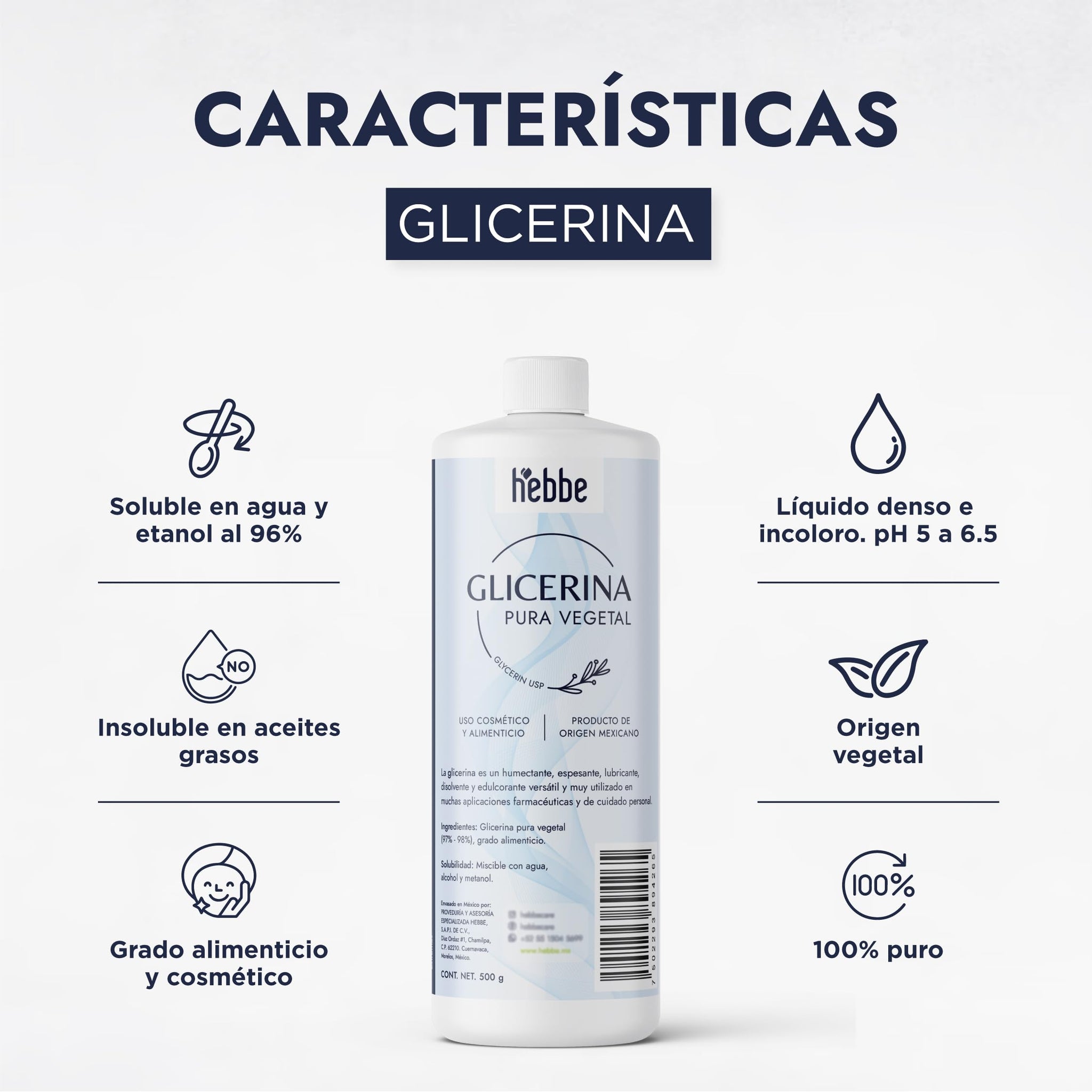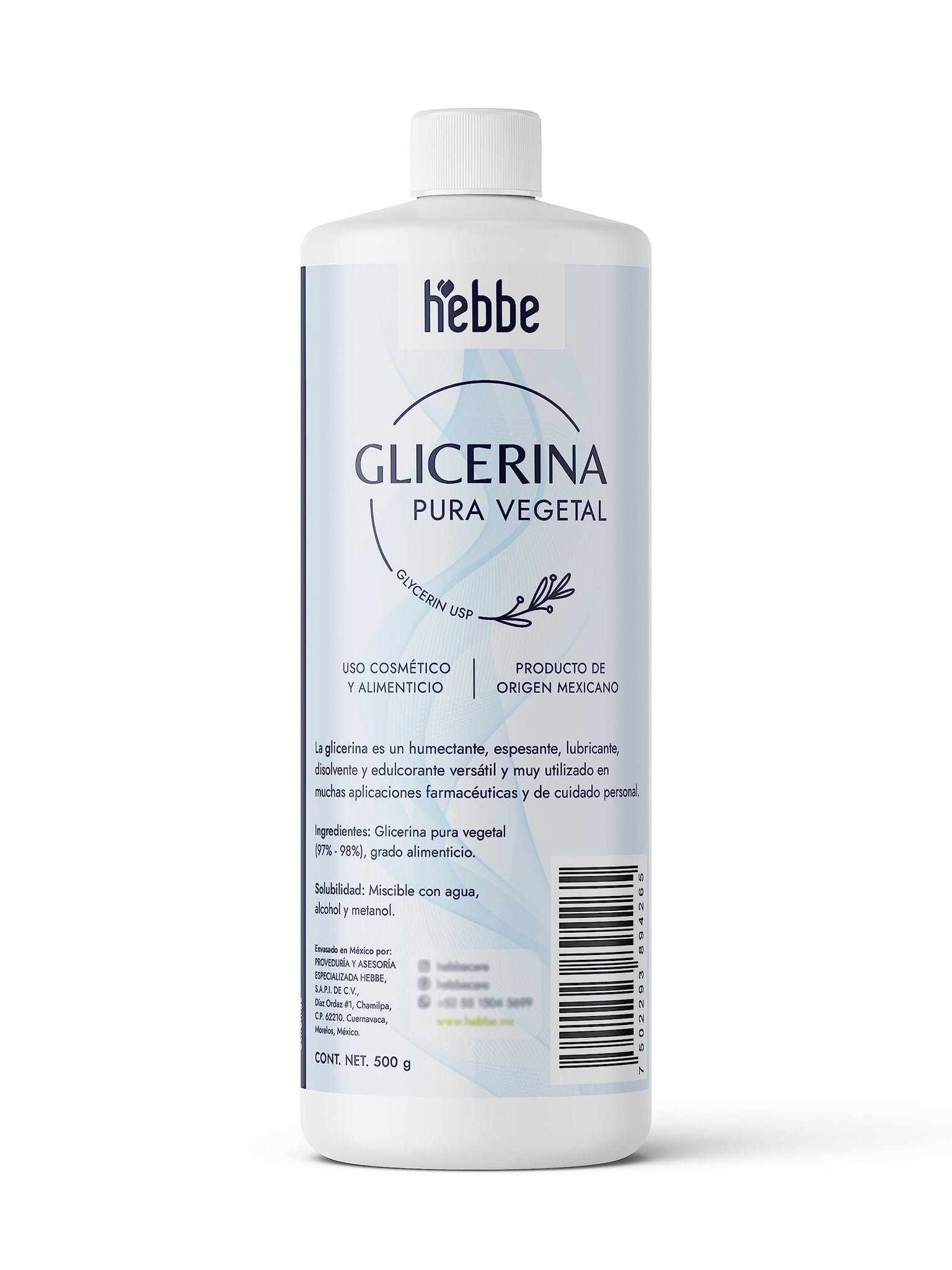▶ HEBBE - Glicerina vegetal 500 g | Remedio para la irritación e inflamación | Para todo tipo de piel | Refuerza la barrera de la piel | Atenúa los signos de expresión y arrugas | Contenido: 500 g