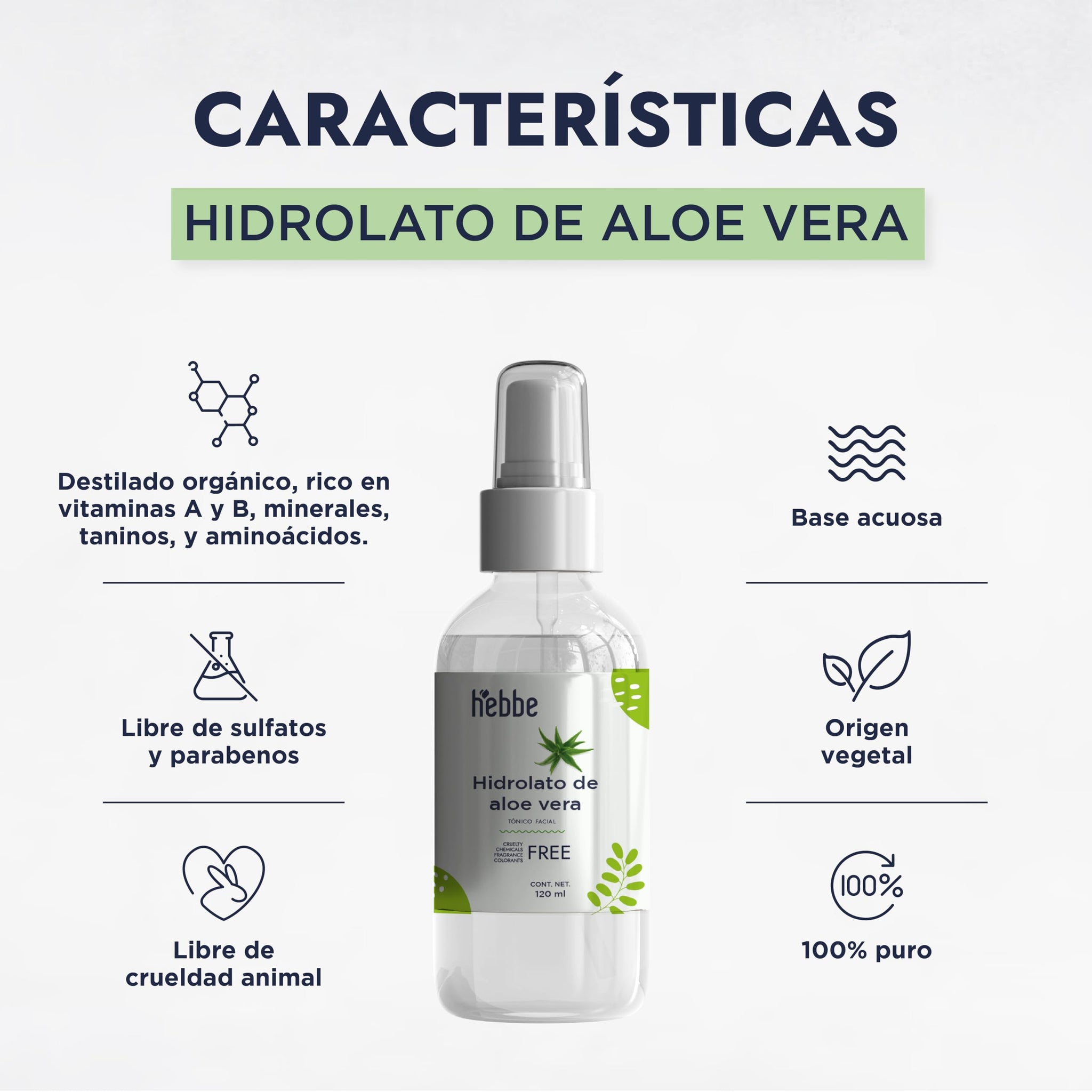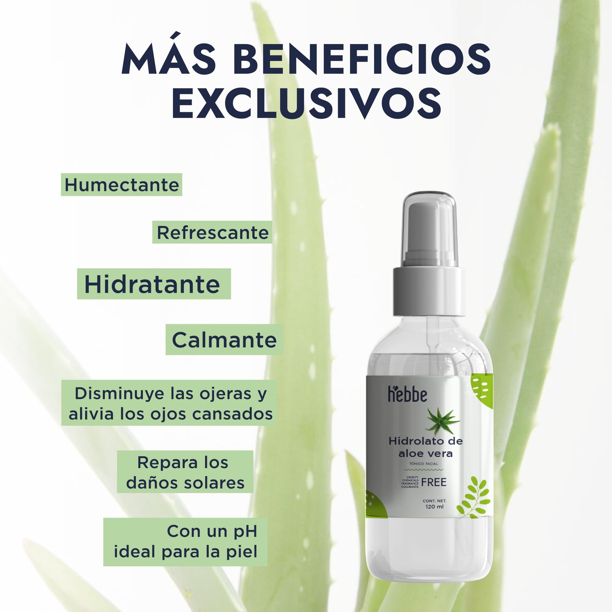 ▶ HEBBE - Hidrolato de Aloe 125 ml | Humectante, Refrescante y Reparador Solar | Disminuye Ojeras, Alivia Ojos Cansados y Combate Daños Solares | pH Ideal para la Piel | Contenido de 125 ml