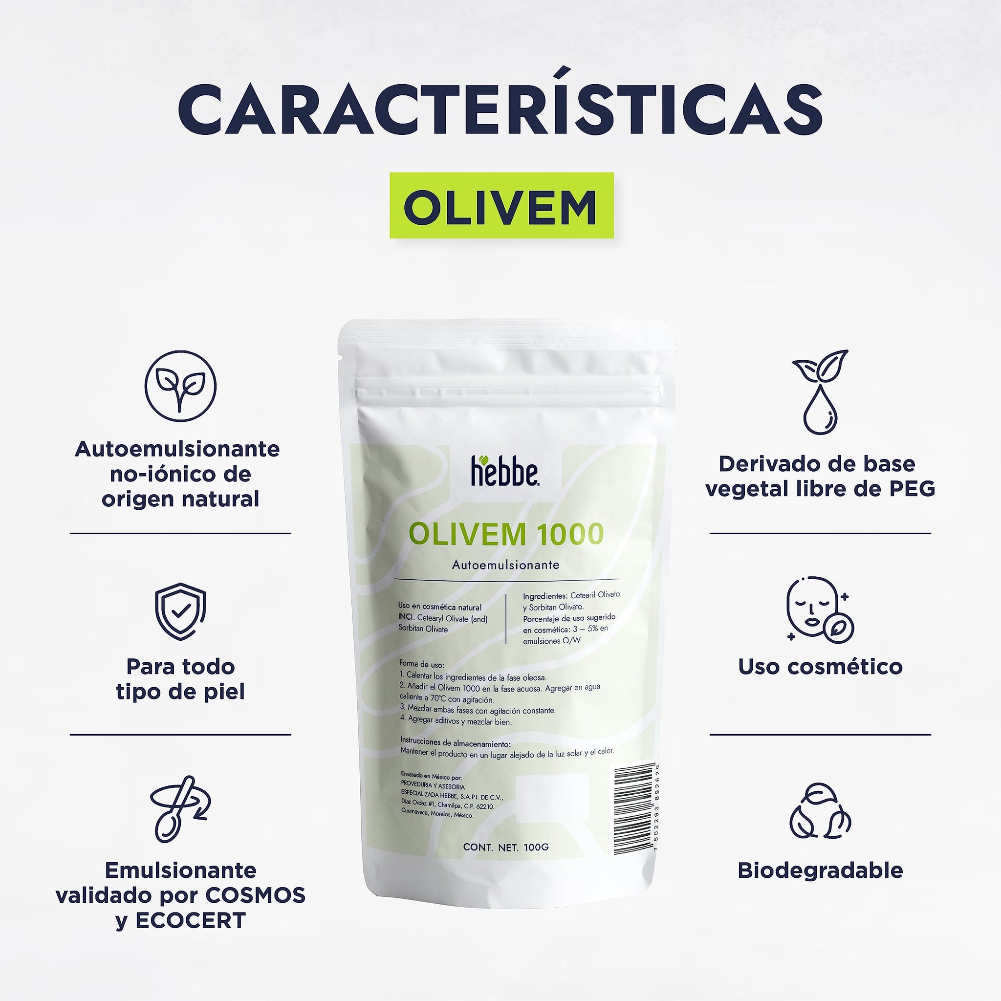 ▶ HEBBE - Olivem 1000 100 g | Autoemulsionante vegetal | Emulsionante cosmetico o/w | Aporta un efecto extra hidratante | No deja sensación de grasa | Emulsiones suaves y sedosas | Contenido: 100 g