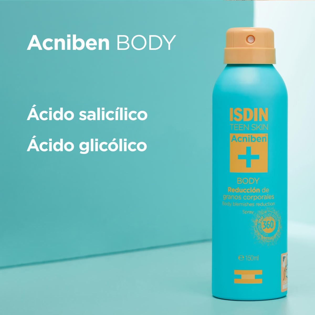 ▶ ISDIN ACNIBEN Body Spray Corporal de Secado Rápido - Reducción de Granos Corporales, 150 ml