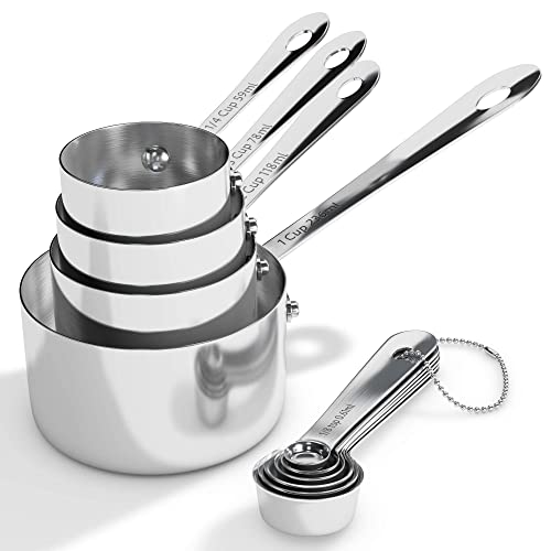 - Uso fácil y apto para lavavajillas. La cuchara medidora es ideal para usar como una cuchara de café, o las tazas grandes se pueden utilizar como taza de medición de líquido. Estas herramientas de cocina se pueden utilizar para alimentos secos o líquidos.