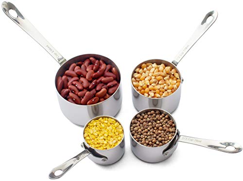 - Asas de medición irrompibles, experimenta lo que usan los profesionales: no comprometimos la belleza con la calidad. Ya sea el acero inoxidable de calibre 18/8 liso y brillante o la utilidad de sus fondos planos y sin vuelco y anidación compacta, este juego de utensilios de cocina con asas remachadas durará toda una vida. ¡Definitivamente puedes pasar estos a tus nietos!
