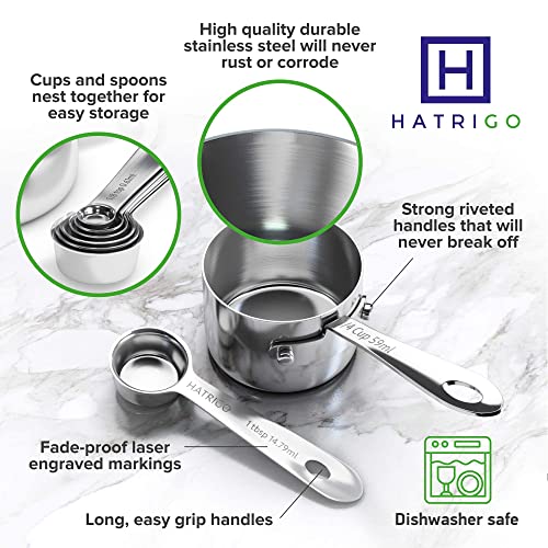 - Nuestra garantía de por vida: las tazas y cucharas medidoras de metal de acero inoxidable son las mejores en Amazon. Estamos tan seguros de que ofrecemos una garantía de reemplazo de por vida en cualquier defecto del fabricante. ¡Contáctenos en Facebook @HatrigoBrands para obtener asistencia instantánea!