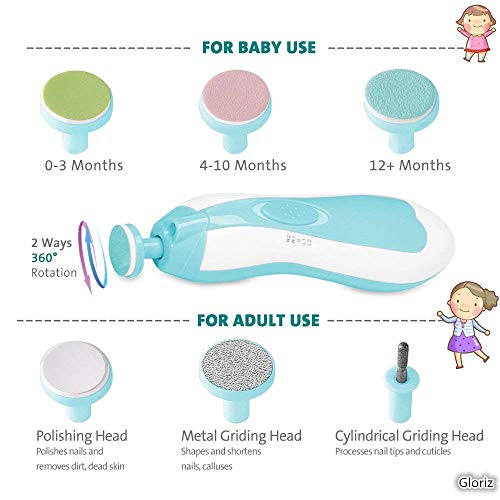 - 【Seguro Y Eficaz】: La Lima de Uñas Eléctrica para Bebes de Gloriz es la herramienta ideal para los padres que buscan una forma segura, fácil y confiable de cortar y pulir las uñas de sus bebés o recién nacidos, sin correr ningún tipo de riesgos. El kit para el cuidado de las uñas del bebe garantizan una experiencia segura y cómoda.