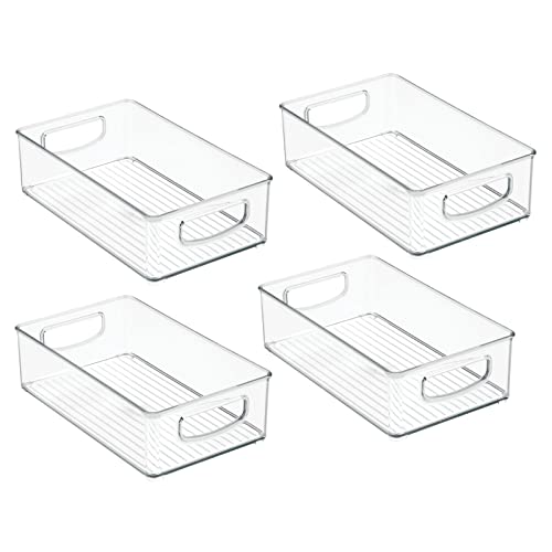 ▶ Organizador clóset de cocina y despensa organizador de almacenamiento de contenedores – Pack de 4, poco profundo, transparente