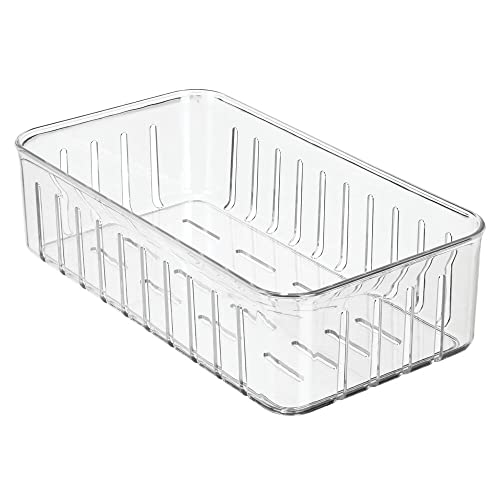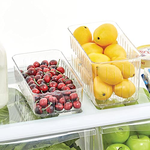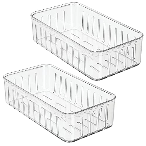 ▶ Juego de 2 Cajas plásticas organizadoras pequeñas – Práctico Organizador de despensa sin Tapa – Organizador de Nevera con Ranuras Laterales de ventilación – Transparente