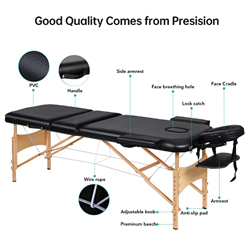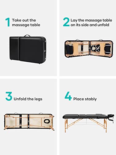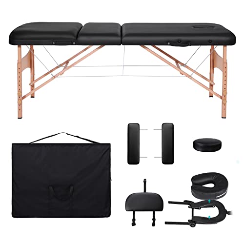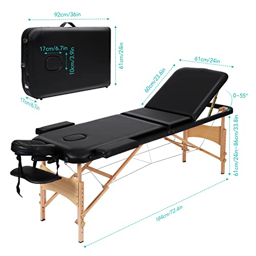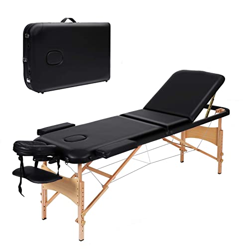 ▶ Cama De Masaje portátil, cama de masaje profesional, mesa de terapia de spa de 73 pulgadas, marco de madera ajustable de 3 pliegues