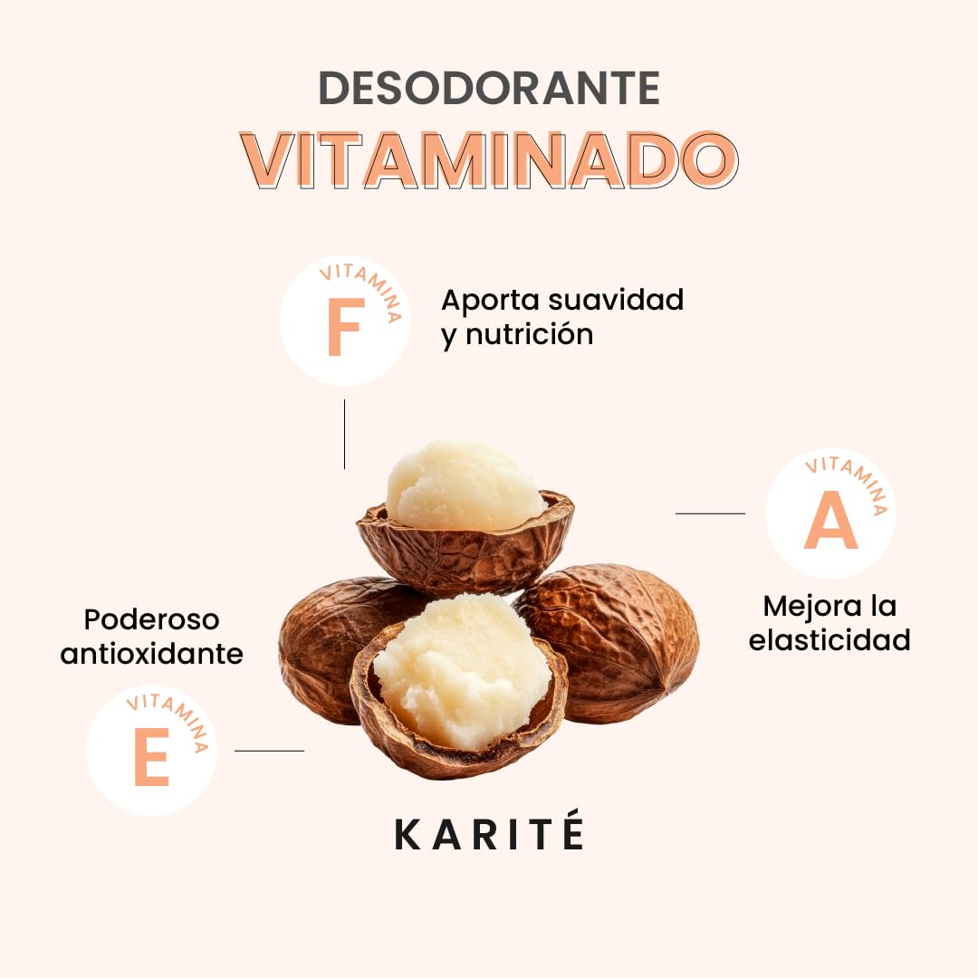 - SIN ALUMINIO A diferencia de otros desodorantes que irritan o tapan los poros, nuestra gran ventaja es que no tapa los poros por ser natural, además tiene magnesio y mantequilla de Karité por lo que tu piel se va a mantener hidratada y humectada.