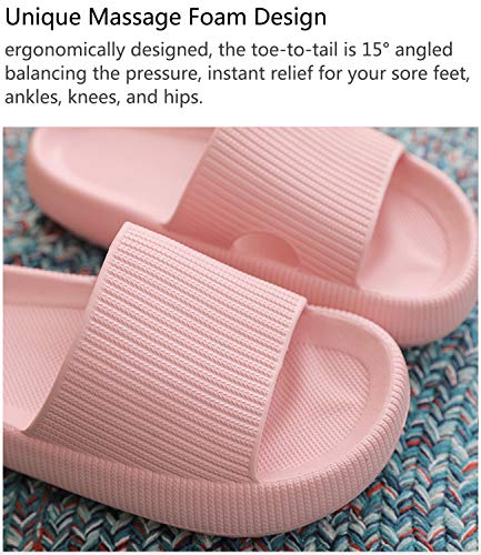 - Antideslizantes: las pantuflas Cloud para mujeres y hombres están diseñadas con material texturizado antideslizante para evitar que te resbales y caigas, así como evitar que tu pie salga. Estas pantuflas de almohada tienen una excelente resistencia al deslizamiento, tampoco experimentarás rozaduras ni ampollas en los zapatos de almohada. Secado rápido, estas pantuflas no harán chirridos incómodos después de la ducha, definitivamente adecuadas para el baño.