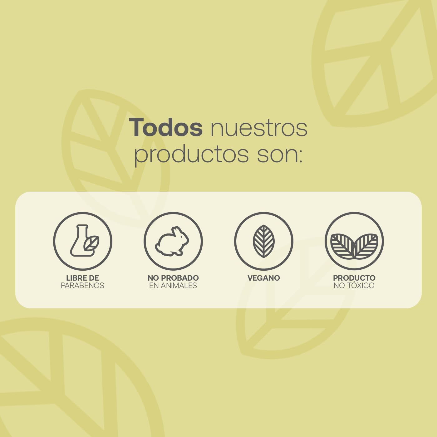 - Producto realizado con ingredientes de origen natural. No tóxico, Vegano, No probado en animales, Libre de Parabenos.
