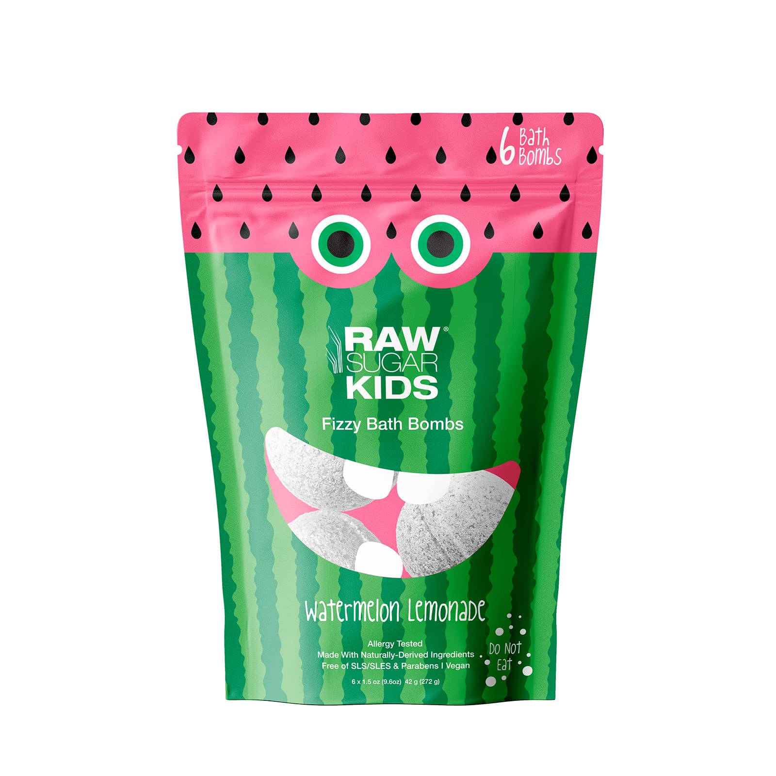 ▶ RAW SUGAR Bath Fizzer, Bombas de Burbujas para Bañera, para Niños de 3 Años y Más, Aroma a Limonada de Sandía, Prensado en Frío, Vegano, Libre de Sulfatos SLS y SLES y Parabenos, 1 Bolsa con 6 Piezas