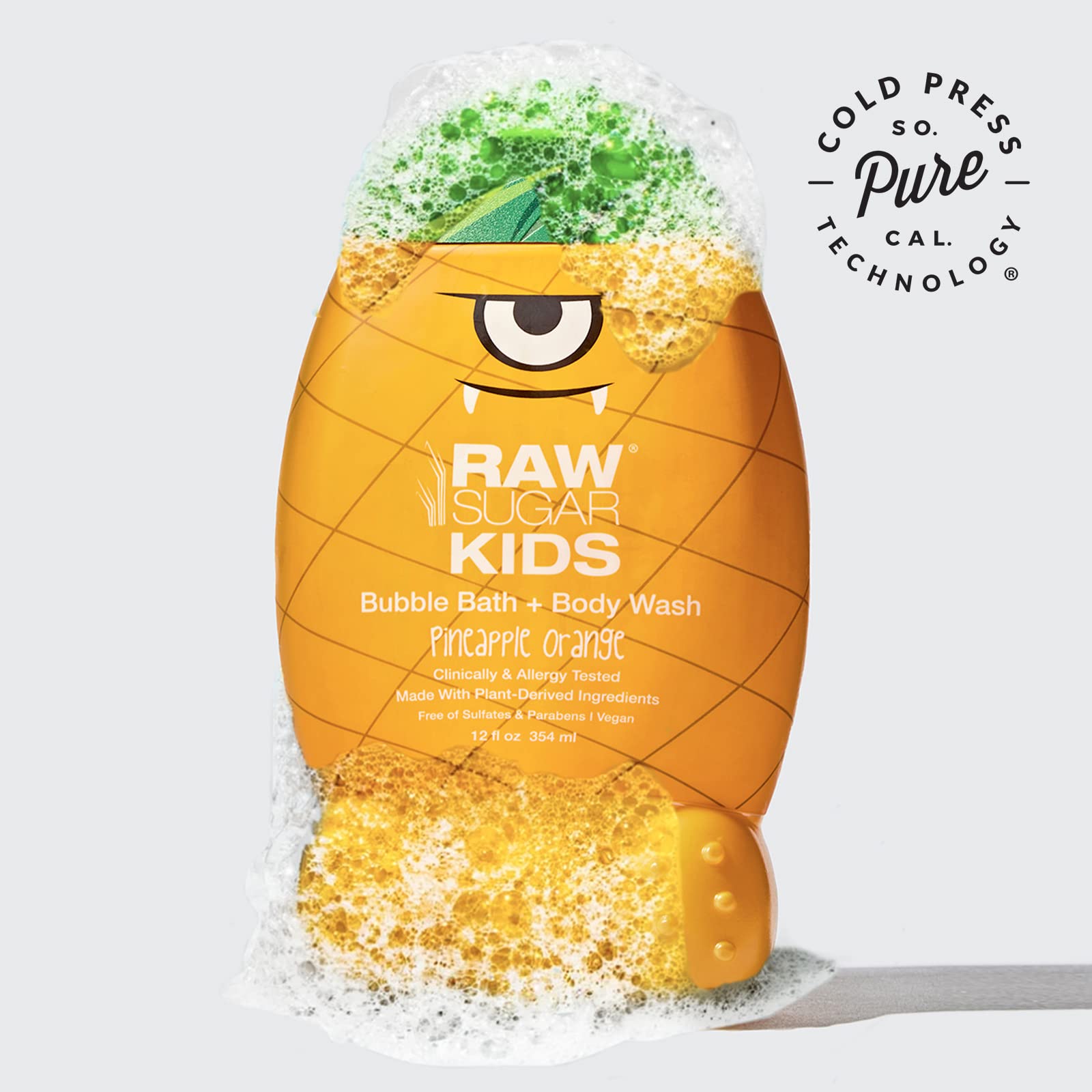 ▶ RAW SUGAR Kids Bubble Bath and Body Wash Pineapple Orange - 12 fl oz