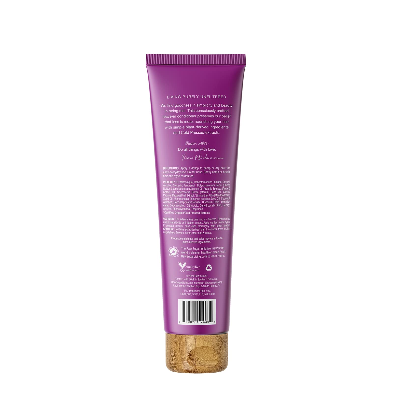 - PRODUCTO RESPONSABLE. La crema acondicionadora sin enjuague de Raw Sugar es un producto vegano, libre de sulfatos y parabenos. No fue probado en animales y su envase fue creado mayormente con plásticos reciclados