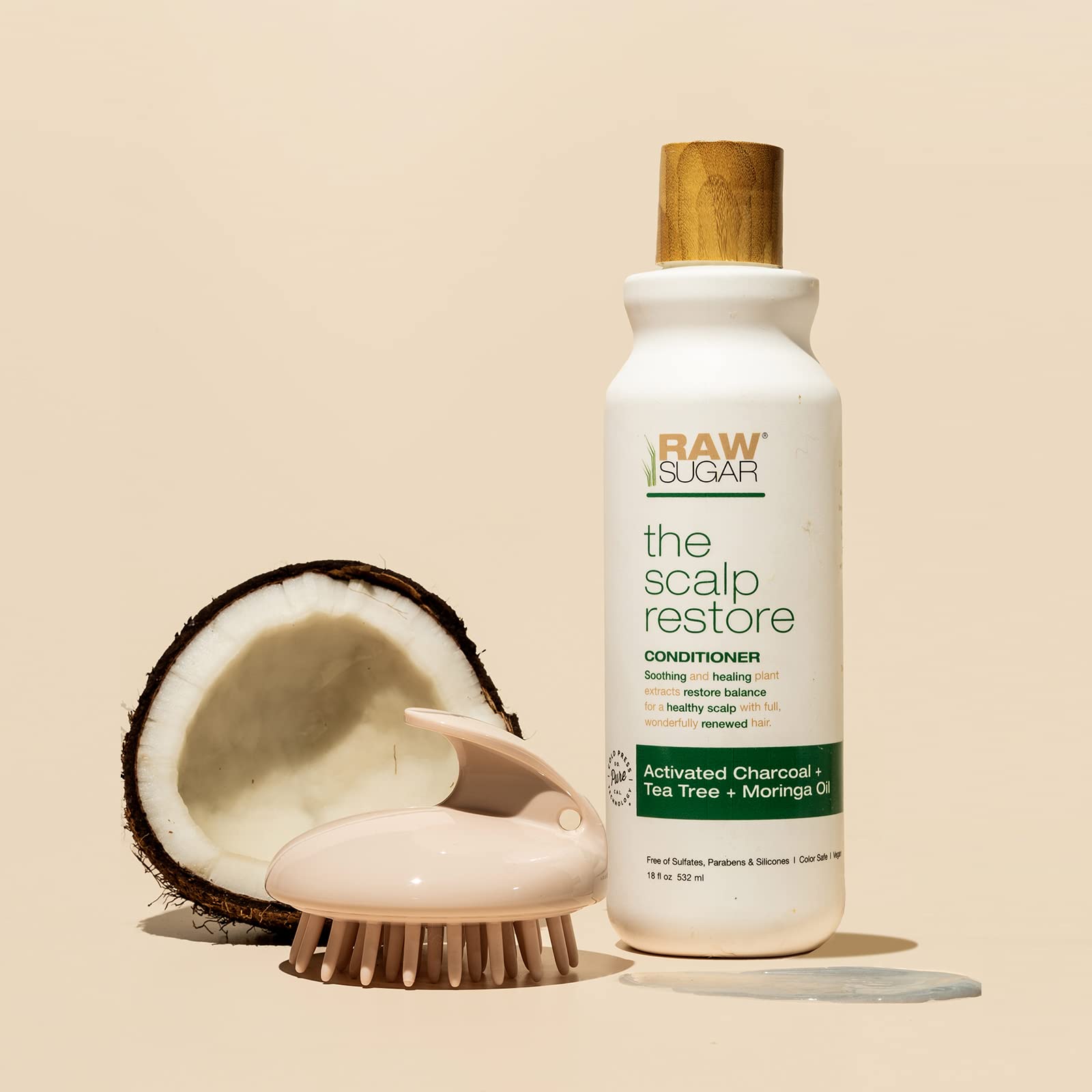 ▶ RAW SUGAR Scalp Restore, Acondicionador, Restaura el Cuero Cabelludo, con Carbón Activado, Árbol de Té y Aceite de Moringa, Prensado en Frío, Vegano, Libre de Sulfatos, Siliconas y Parabenos, 532 ml