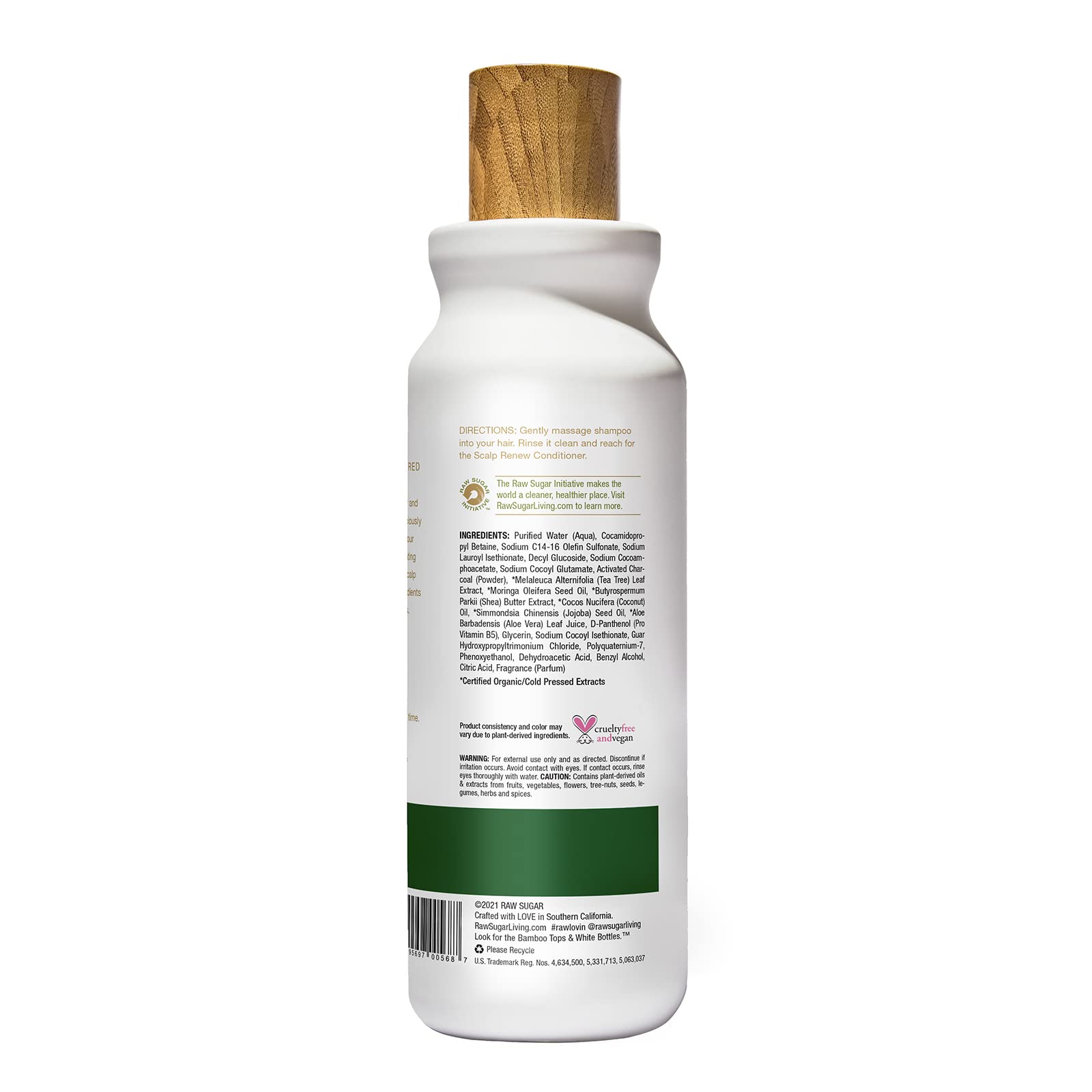 - PRODUCTO RESPONSABLE. El shampoo de Raw Sugar es un producto vegano, libre de sulfatos, siliconas y parabenos. No fue probado en animales y su hermoso envase fue creado mayormente con plásticos reciclados