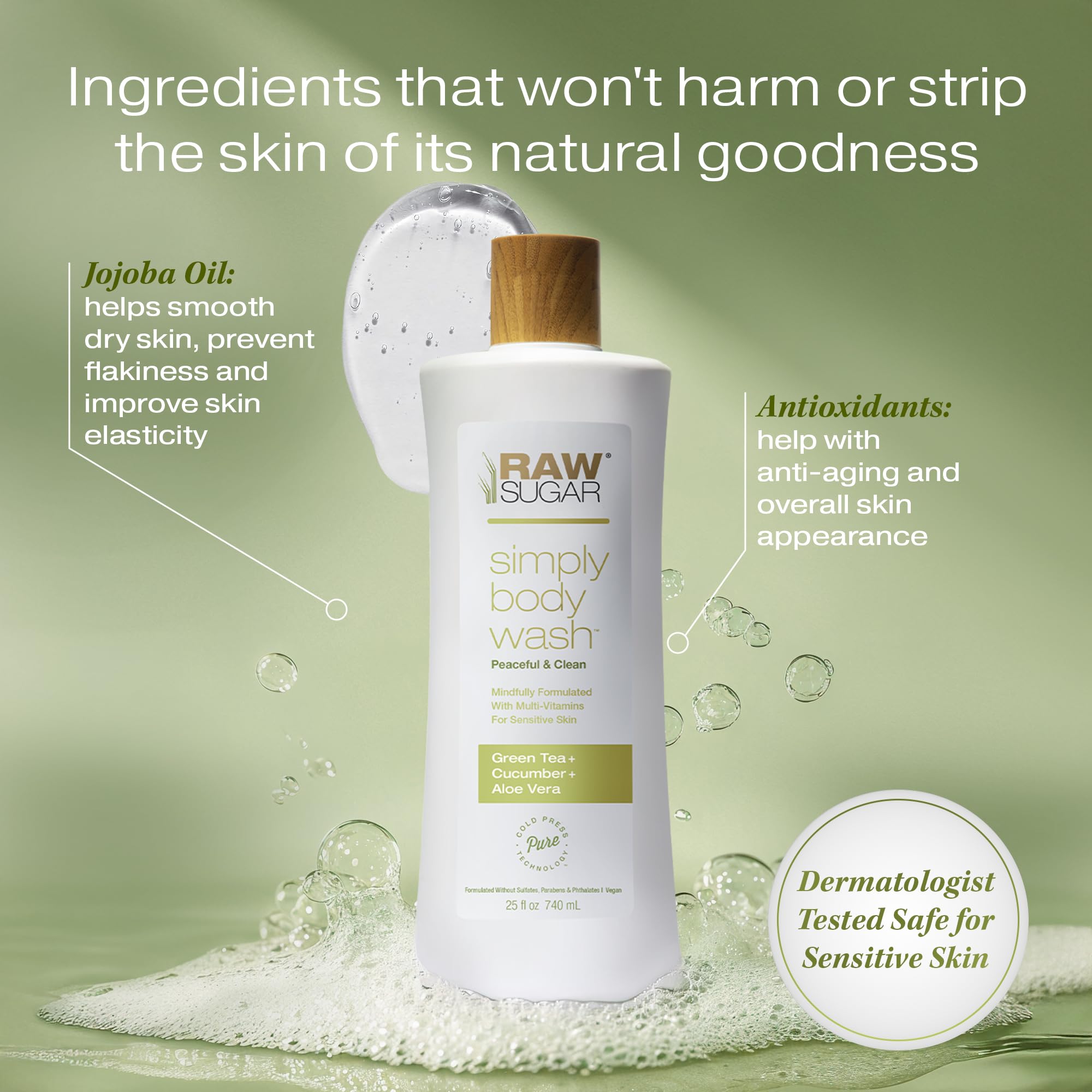 ▶ RAW SUGAR Sensitive Skin Green Tea Cucumber and Aloe Vera Natural Body Wash 25oz, pack of 1