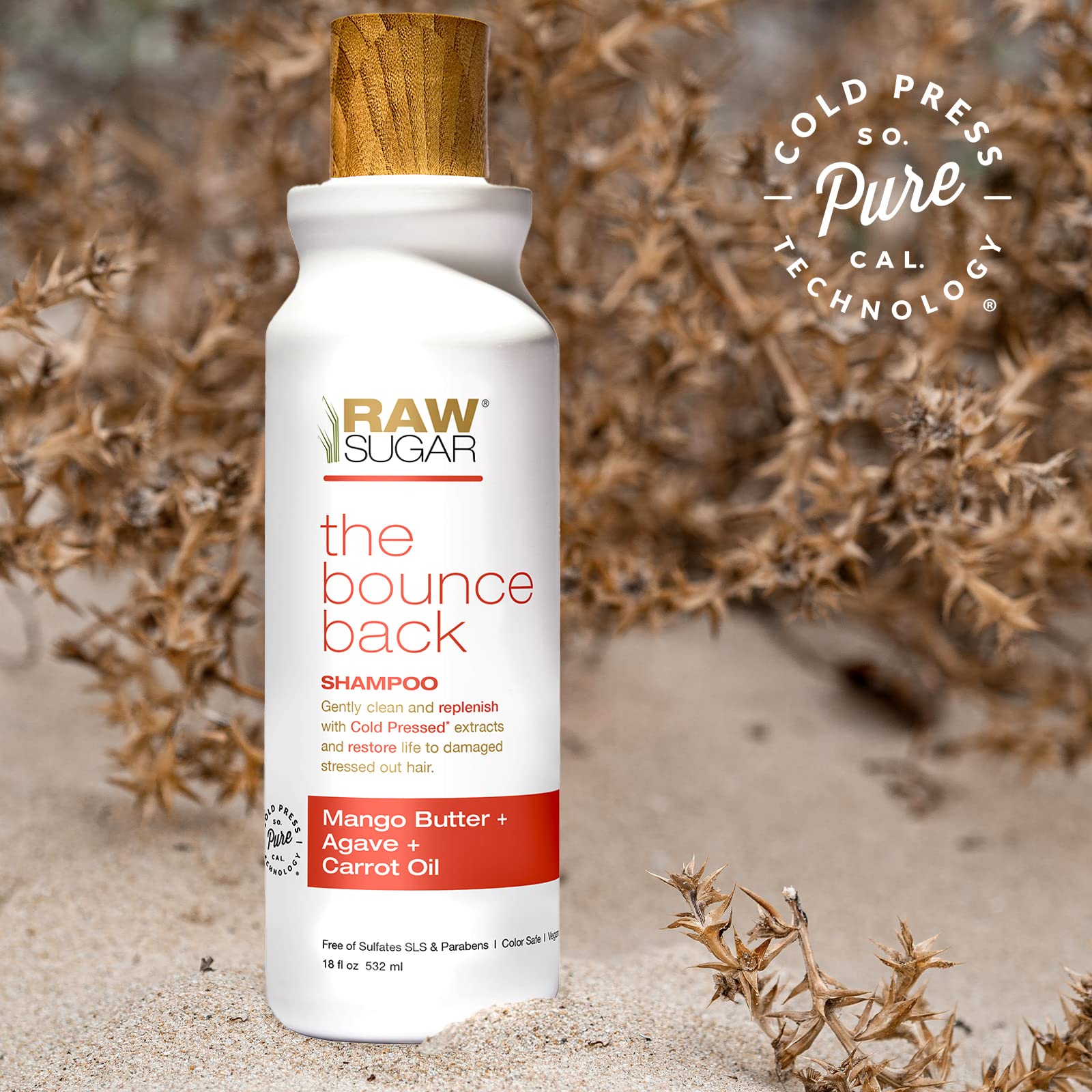 ▶ RAW SUGAR The Bounce Back, Shampoo Hidratante y Fortalecedor, con Manteca de Mango, Agave y Aceite de Zanahoria, Prensado en Frío, Vegano, Libre de Sulfatos, Parabenos y Siliconas, 532 ml