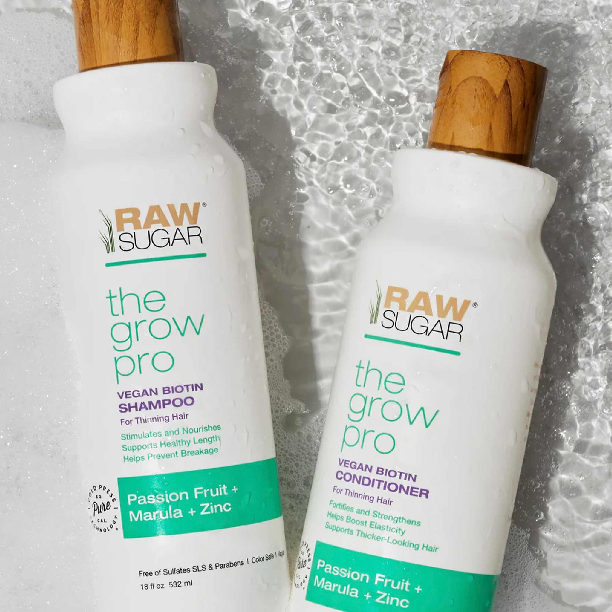 - FORTALEZA Y CRECIMIENTO. El shampoo The Grow Pro de Raw Sugar está enriquecido con biotina vegana y zinc para fortalecer el cabello débil. Ideal para quienes buscan un cabello más saludable y revitalizado desde el cuero cabelludo hasta las puntas