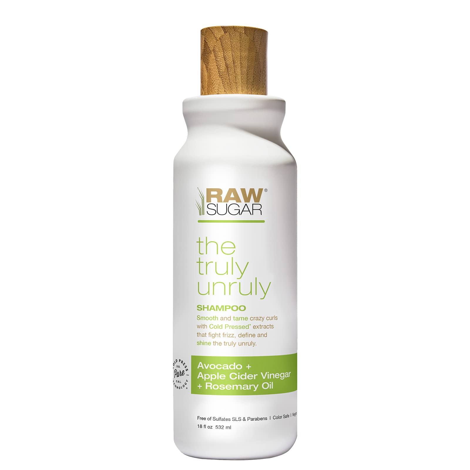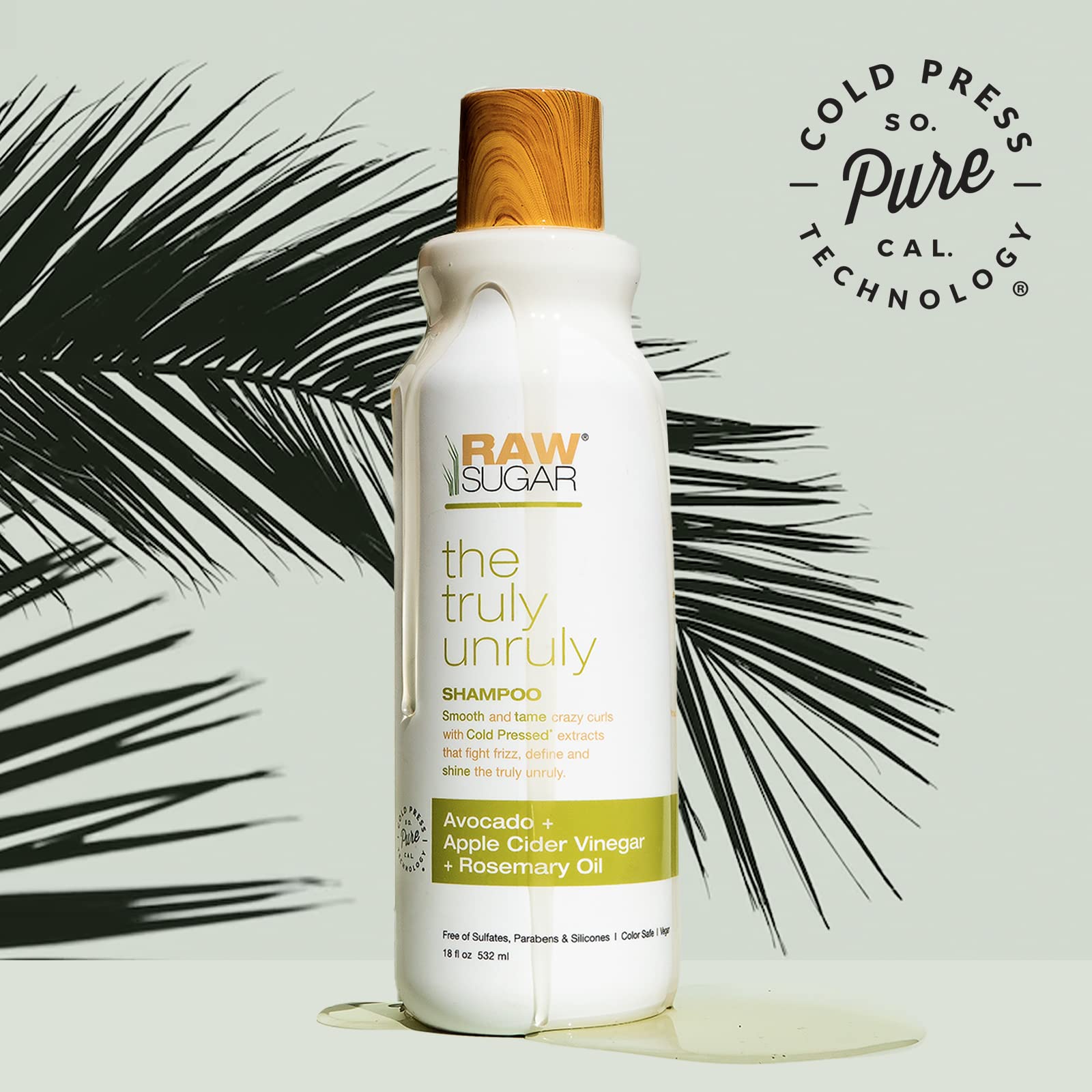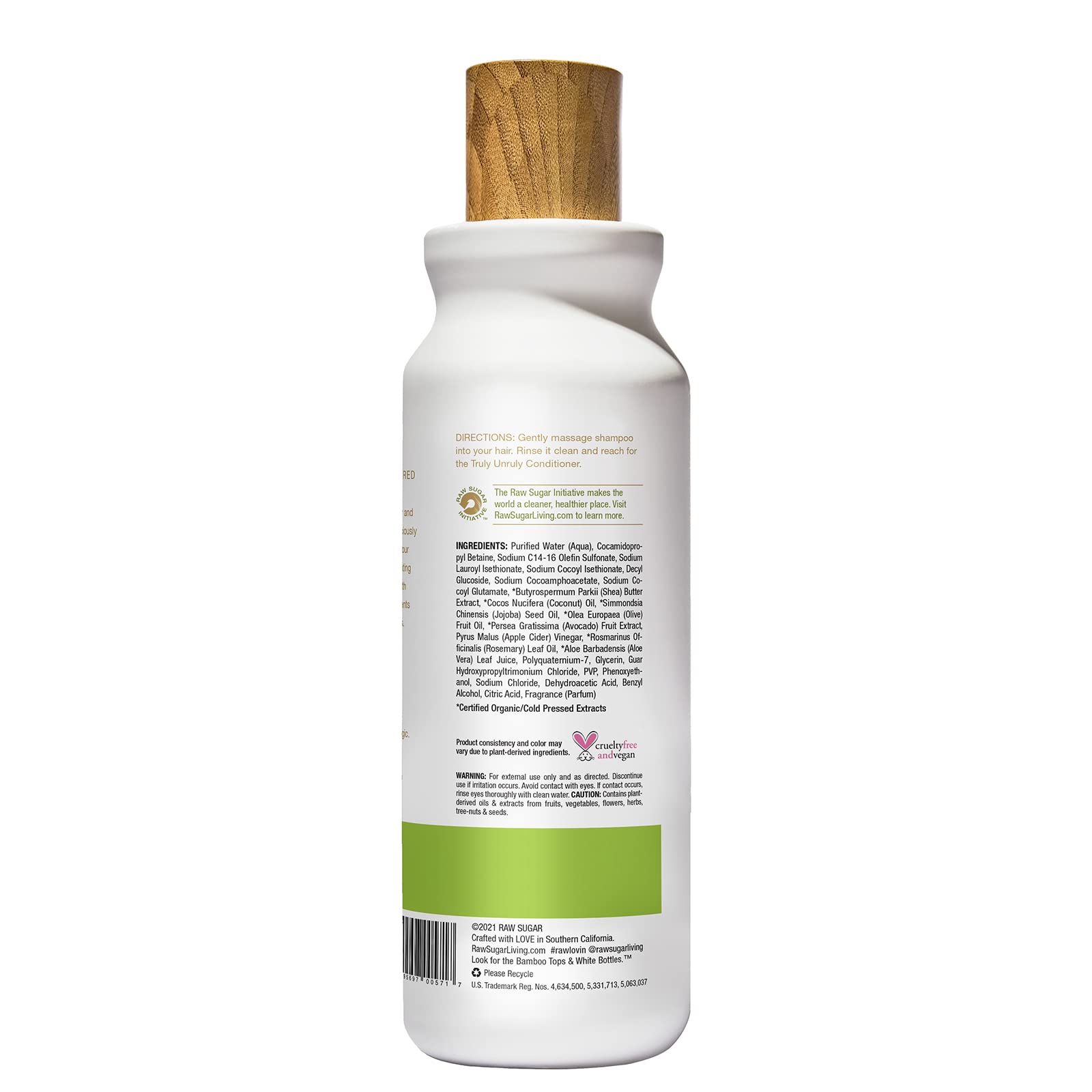▶ RAW SUGAR Truly Unruly, Shampoo Hidratante para Rizos, Reduce el Frizz, con Aguacate, Vinagre de Manzana y Aceite de Romero, Prensado en Frío, Vegano, Libre de Sulfatos, Siliconas y Parabenos, 532 ml