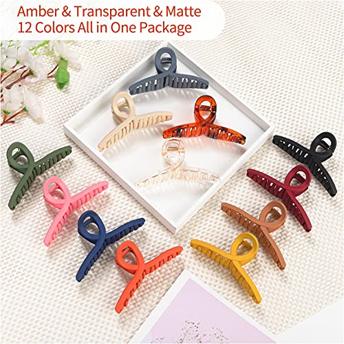 ▶ Pinzas de pelo grandes de 4.3 pulgadas, 12 clips de pelo grandes mate para mujeres y niñas, pinzas antideslizantes para cabello grueso, pinzas de mandíbula de plátano (4.3 pulgadas)