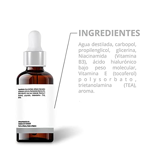 - CONTENIDO: Cada suero de niacinamida contiene además de vitamina B3, ácido hialurónico y vitamina E, potentes hidratantes y antioxidantes para devolverle forma y firmeza a la piel y ojos en las áreas afectadas por pecas, ojeras, líneas de expresión, bolsas.