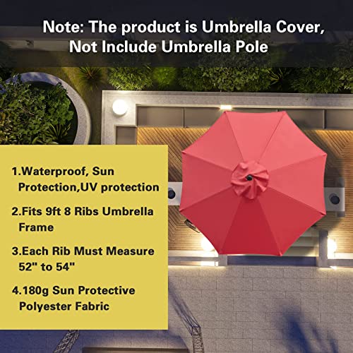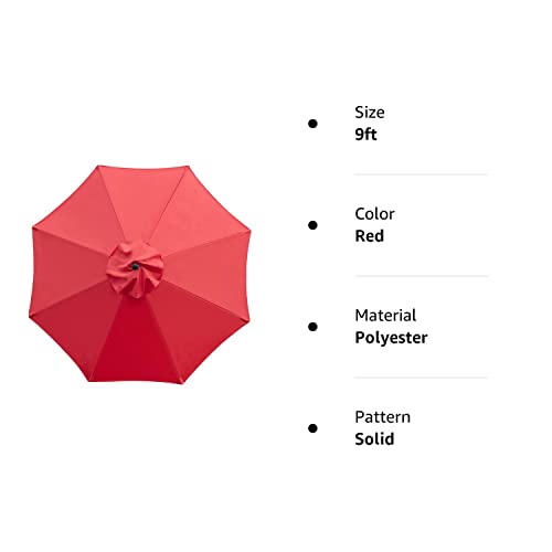 ▶ Toldo de repuesto para sombrilla de patio de 9 pies, ajuste superior para sombrilla al aire última intervensión (rojo)