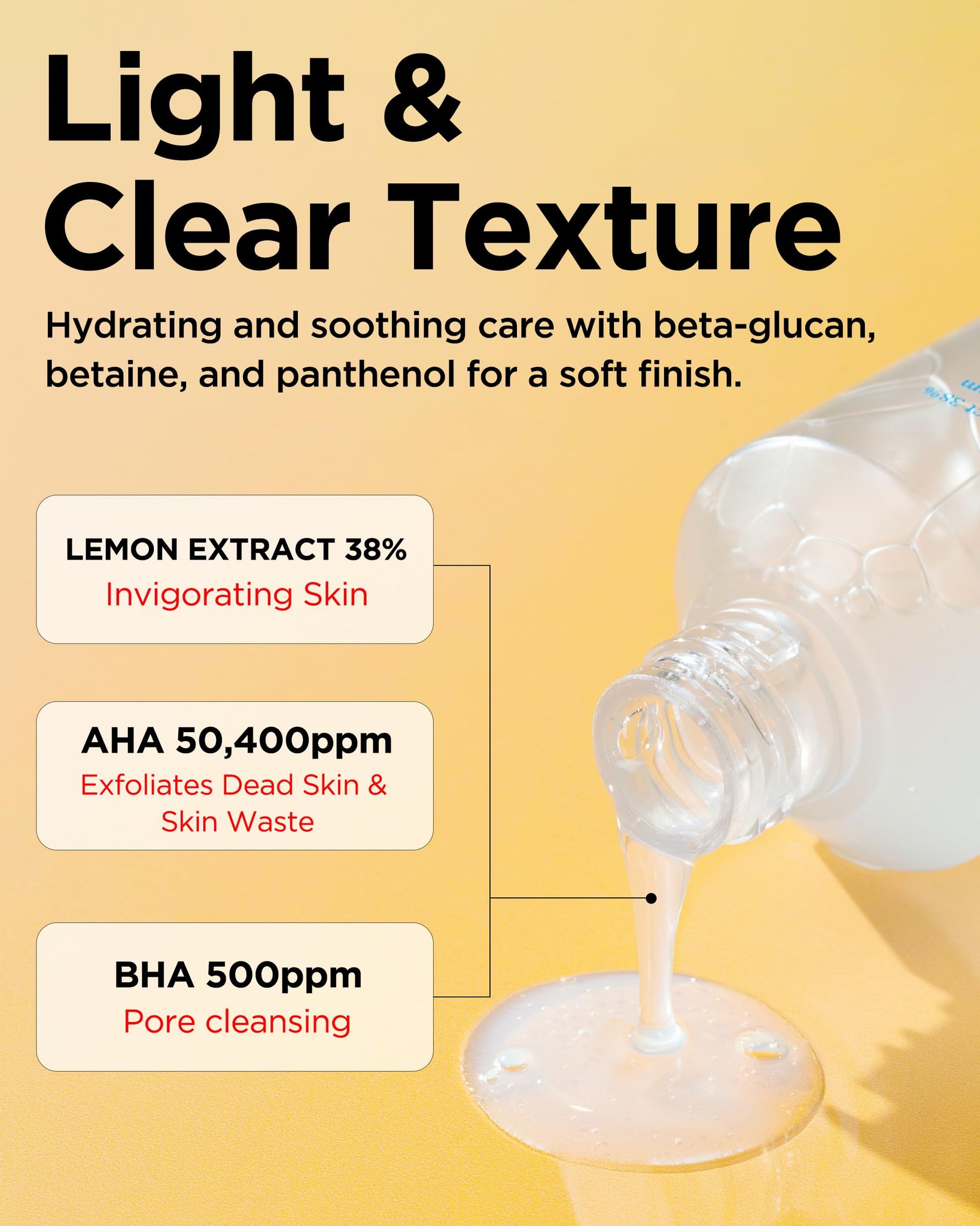 - EXCELENTE ALIADO: El tónico exfoliante de limón esta formulado para que sea amigable con tu piel una exfoliación gentil, eliminando exceso de sebo y células muertas, mientras ilumina y uniforma su tono. Esto gracias a que contiene una combinación de AHA, BHA Y extracto de limón.