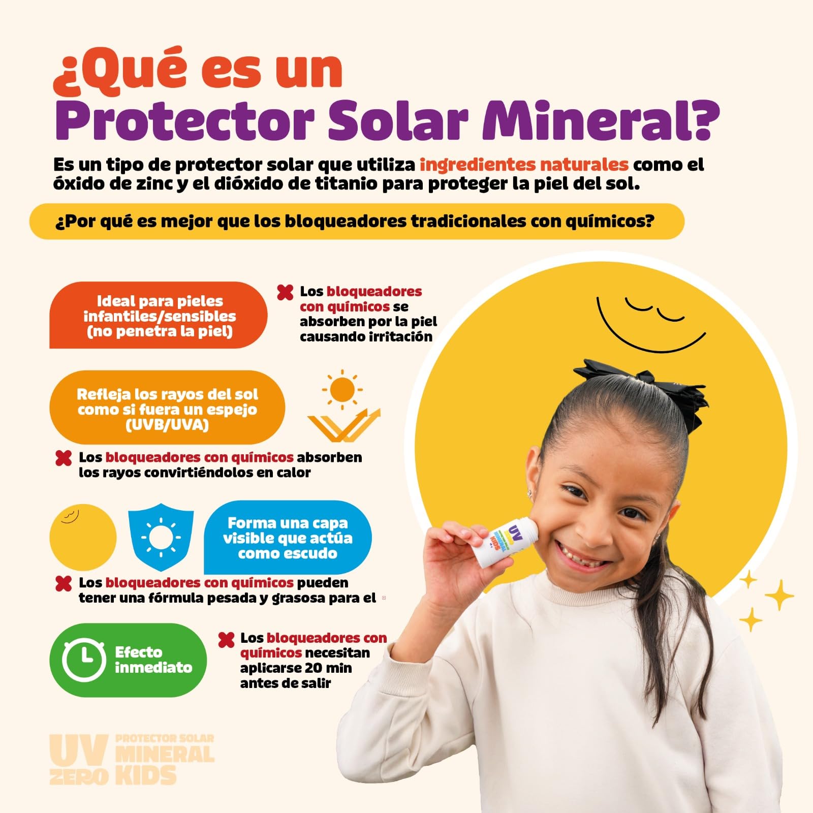 UV ZERO - Bloqueador Solar Mineral en Barra para Niños | FPS 50 | Protección UVA/UVB | Hipoalergénico y Libre de Fragancias | Dermatológicamente Probado | Ideal para Rostro | Ingredientes Naturales, Sensación Ligera Mate | 18g (1 Unidad)