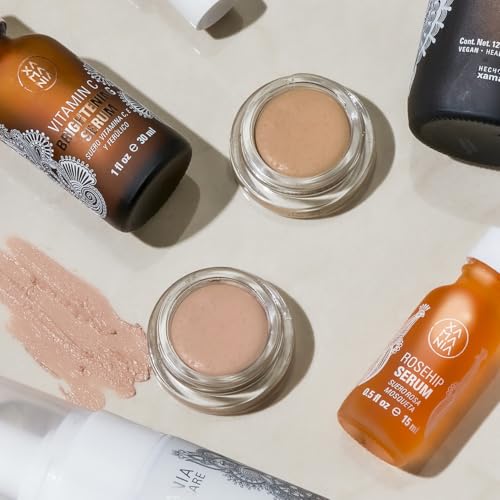 - ✨𝗙Ó𝗥𝗠𝗨𝗟𝗔 𝗖𝗟𝗘𝗔𝗡 𝗤𝗨𝗘 𝗡𝗨𝗧𝗥𝗘: Con manteca de karité y cacao organicó, hidrata y suaviza mientras corrige imperfecciones: Xamania es Skinfood. Diseñado para piel sensible o con acné: no tapa poros ni irrita. Calma, cubre, camufla y equilibra.